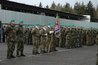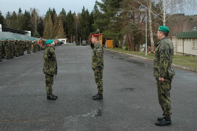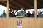 NŠ 13. dp plukovník Štefan Roško podává hlášení ZV pozemních sil brig. gen. Ladislavu Jungovi
