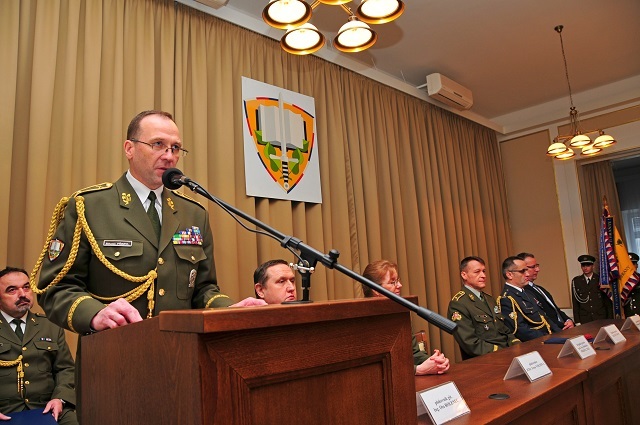 Rektor-velitel UO brigádní generál Bohuslav Přikryl během úvodního vystoupení