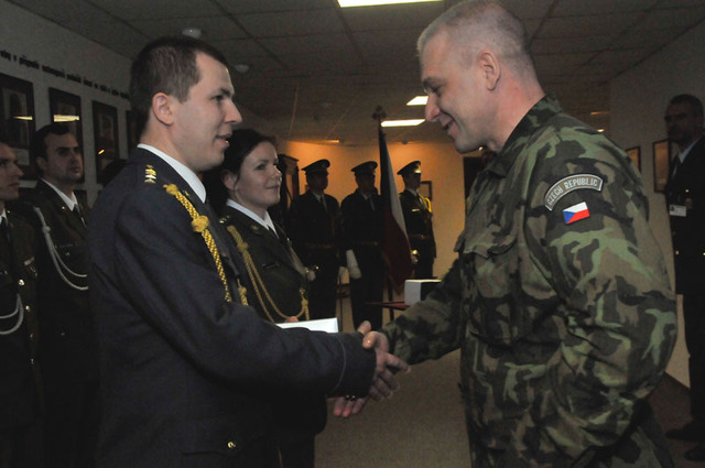 Věcný dar od generála Jiřího Balouna převzali velitelé obou skupin - kapitán Pavel Jáger a nadporučice Michaela Čuříková