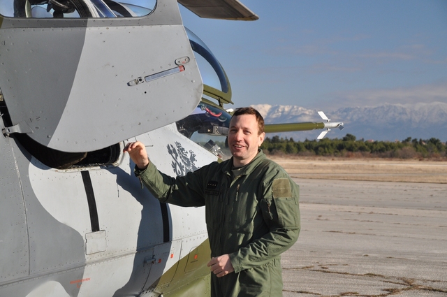Kapitán vrtulníku Mi-24 kapitán Jiří Heřman po příletu na chorvatskou základnu