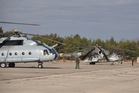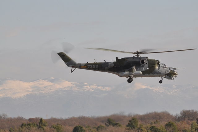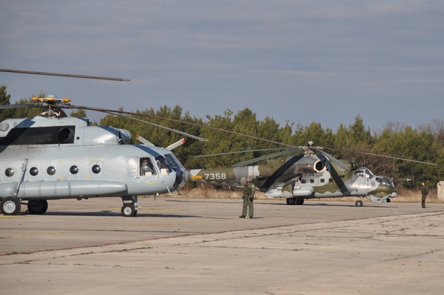 Chorvatská Mi-8 a český vrtulník Mi-24 před odletem na společný letový úkol