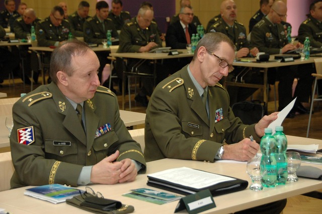 Velitelského shromáždění se zúčastnili také velitelé vzdušných a pozemních sil (zleva) brig. gen. Libor Štefánik a genmjr. Ján Gurník