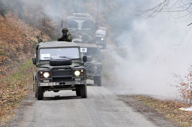 Kolona si vyjela improvizovanou nástražnou výbušninu a reaguje na danou situaci