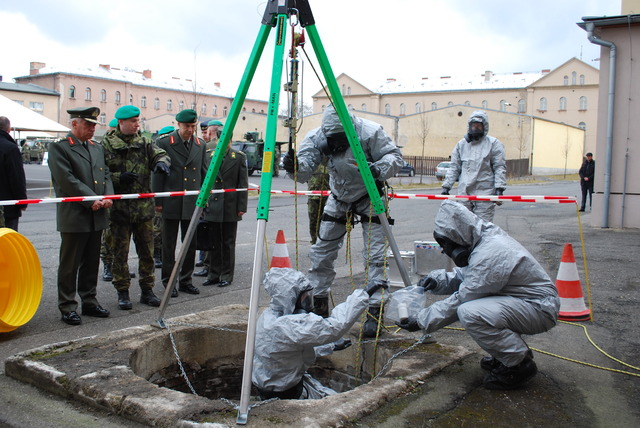 Během statické ukázky předvedli chemici techniku a materiál k plnění odborných úkolů.