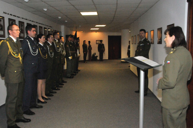 Hlášení na začátku slavnostního nástupu na Generálním štábu AČR převzal plukovník gšt. Radek Šíba