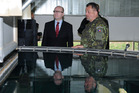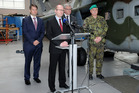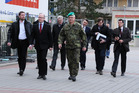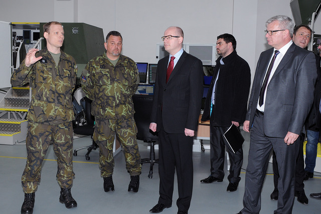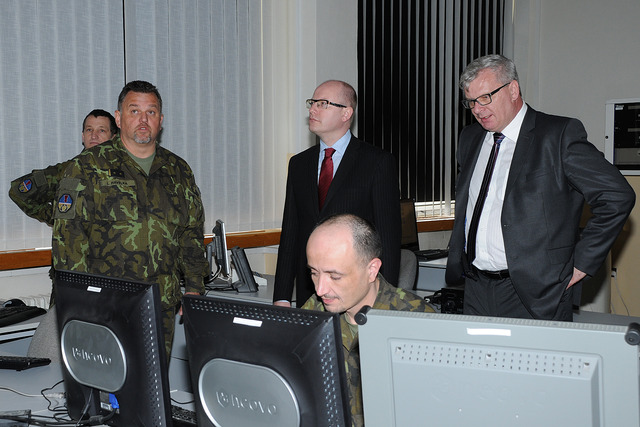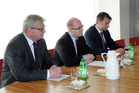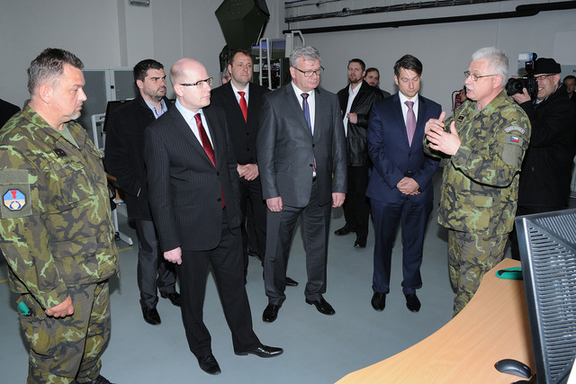 Zleva senátor Ivo Bárek, premiér Bohuslav Sobotka a náměstek MO Jakub Landovský