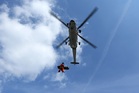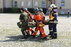 Simulace dopravní nehody - přenos zraněné osoby k vrtulníku letecké záchranné služby