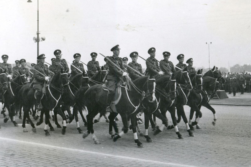 Edvard Beneš na hlavní tribuně na Staroměstském náměstí v Praze 21. srpna 1945 | Prapor 1. čs. brigády na Václavském nám. 17. května 1945 | Jezdecká eskadrona na přehlídce v roce 1952 | Tanková technika na přehlídce 17. května 1945 |