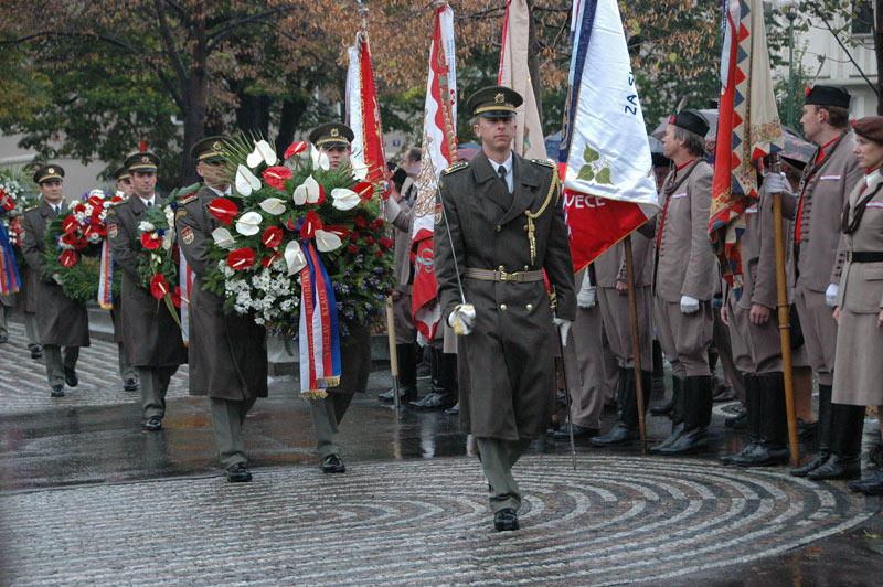 Památku legionářů a zakladatelů státu si v Praze na náměstí Pod Emauzy spolu s občany připomněli položením smutečních věnců nejvyšší státní představitelé. Prezident Václav Klaus, předsedové obou komor Parlamentu ČR Přemysl Sobotka a Miroslav Vlček, ministryně obrany Vlasta Parkanová, náčelník Generálního štábu AČR generálporučík Vlastimil Picek a další hosté.
