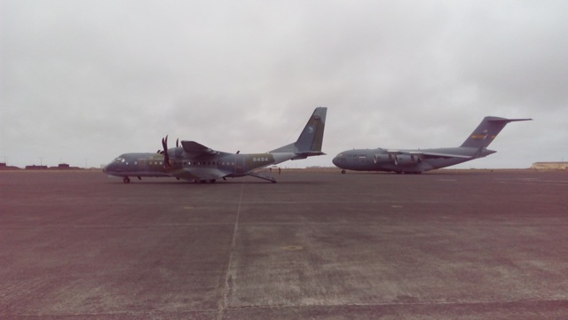 Letoun Casa C-295M byl „zaparkován“ vedle letounu C-17 Globemaster amerického letectva