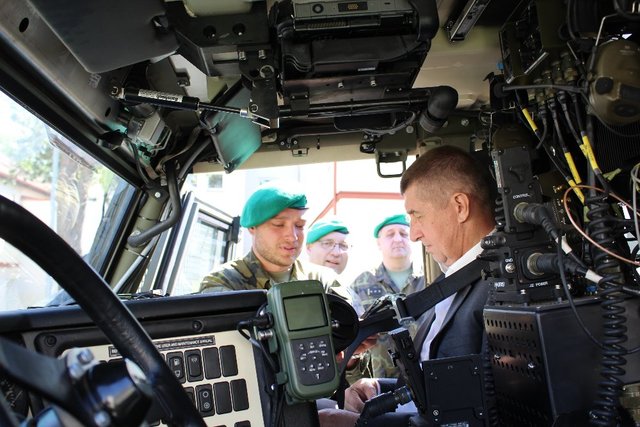 Ministr financí Andrej Babiš se pozdravil s každou osádkou bojového vozidla.