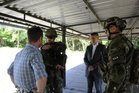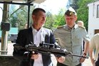 Na posádkové střelnici Velcí si ministr Babiš prohléhl ruční zbraně jednotky.