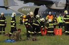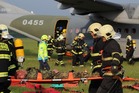 27.5.2016 Hasiči urychleně vytahují zraněné z letadla
