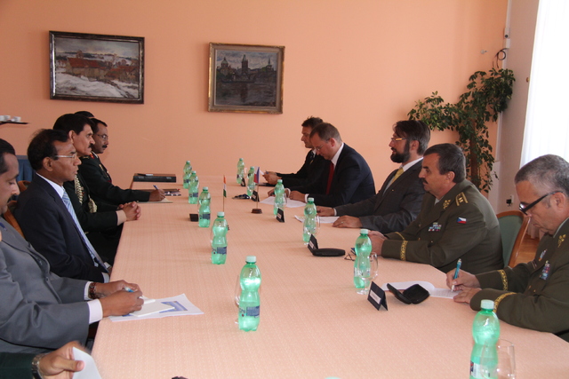 Generál Dalbir Singh a indický vojenský přidělenec Tapas Kumar Misra během jednání na ministerstvu obrany