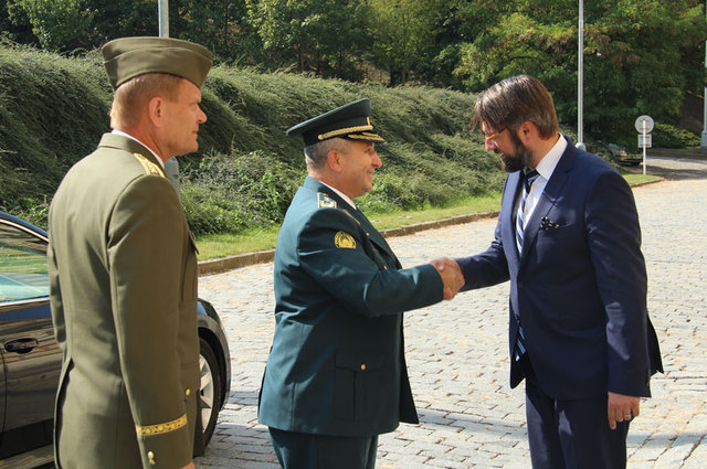 Náměstek pro řízení sekce obranné politiky a strategie Ministerstva obrany Jakub Landovský přivítal na půdě MO ČR náčelníka Generálního štábu Ozbrojených sil Makedonie generálporučíka Metodije Welichovskeho, kterého doprovázel český protějšek armádní generál Josef Bečvář