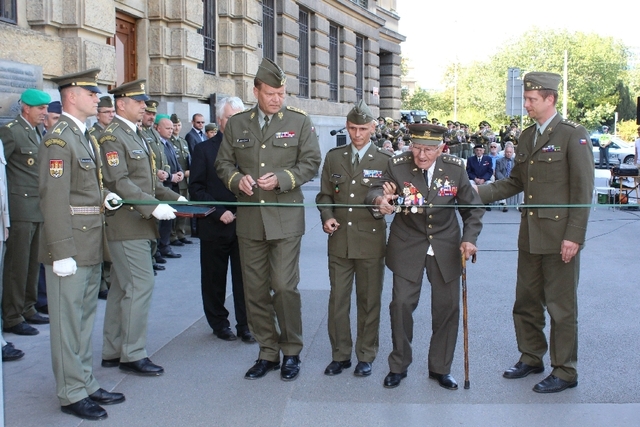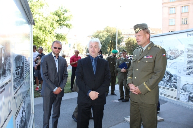 Náčelník Generálního štábu AČR armádní generál Josef Bečvář, předseda výboru pro obranu Poslanecké sněmovny Parlamentu ČR David Kádner a autor výstavy