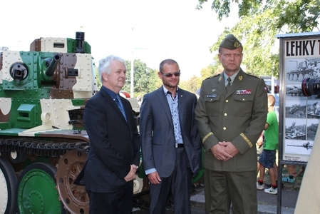 Generál Bečvář, předseda poslaneckého výboru pro obranu David Kádner a autor výstavy Ivo Pejčoch