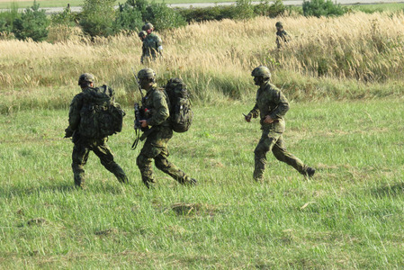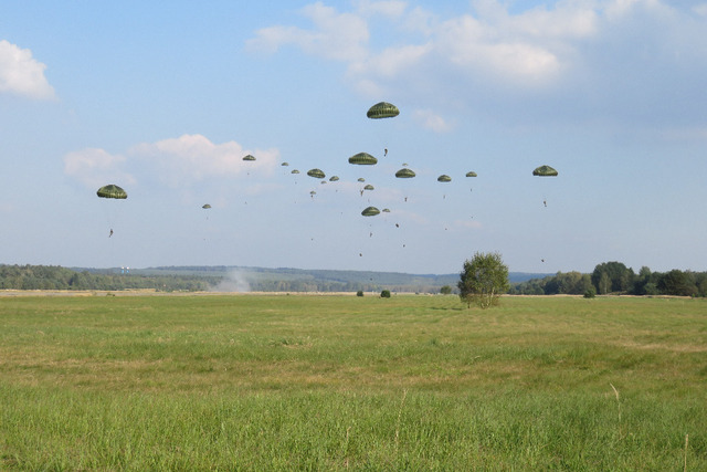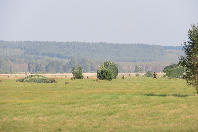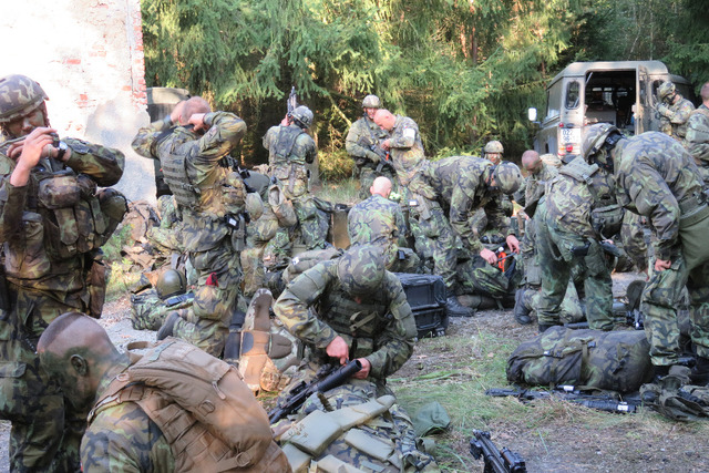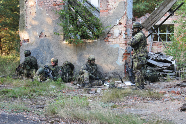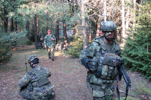 Příslušníci 43. výsadkového praporu při plnění úkolu na cvičení Sky Soldier II
