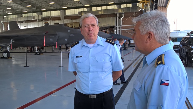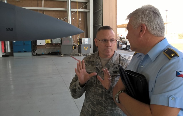 Generál Šebesta v rozhovoru s velitelem lotyšských vzdušných sil na základně Nellis