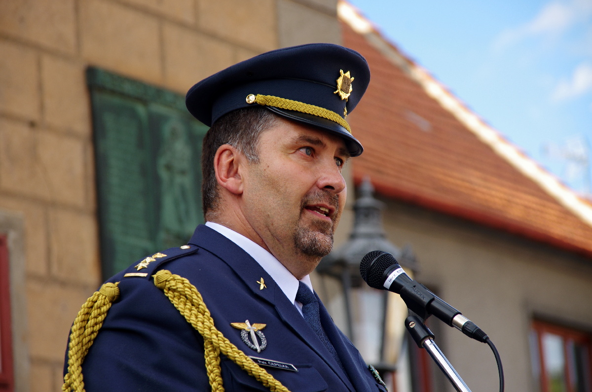 Plukovník gšt. Petr Čepelka, velitel základny během slavnostního nástupu