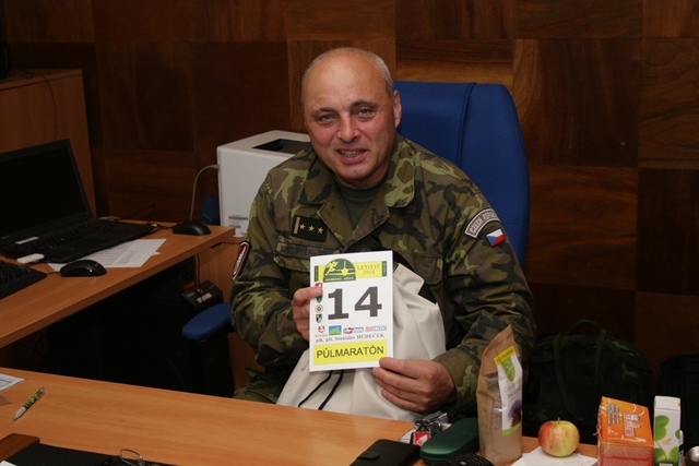 Velitel 14. pluku logistické podpory plk. Stanislav Hudeček přivítal běžce a obdržel pamětní číslo závodu jako symbolický běžec.