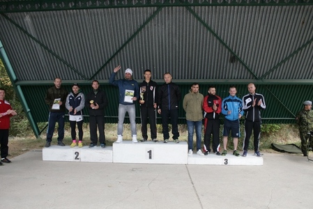 Vítěz hlavního závodu (vpravo) čet. Karel Radiměřský VÚ 4854 Pardubice se svým soupeřem z tratě svob. Tomášem Figurou VÚ 1825 Tábor.