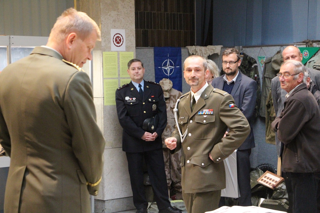 Autor výstavy rotný Miloslav Faifr ze 142. praporu oprav v Klatovech