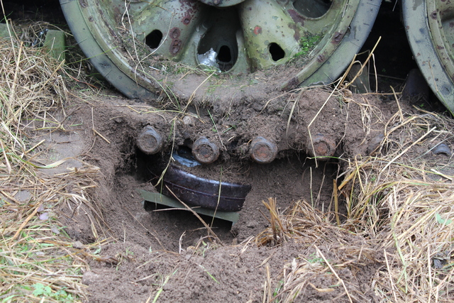 Protitanková mina PtMiBa III pod pojezdovým kolem tanku