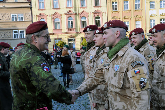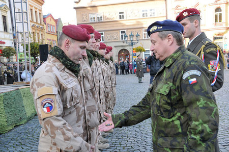 Vojákům, kteří se vrátili z nelehké afghánské mise, blahopřál také bývalý velitel chrudimského praporu pplk. Zdeněk Kolář
