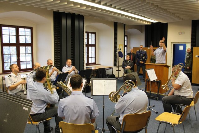 Příslušníci hudby Hradní stráže připravili generálu Bečvářovi krátké vystoupení