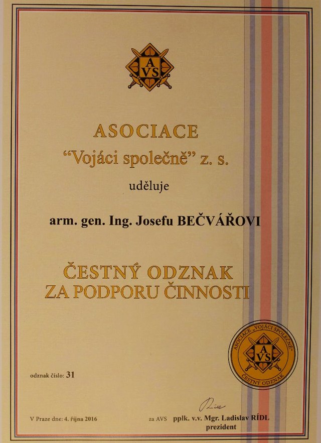 Generál Bečvář byl oceněn Asociací Vojáci společně