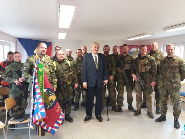 28.11.2016 Prezident zavěšuje pamětní stuhu na prapor 41. mechanizovaného praporu