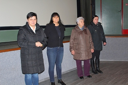Starostka Rešic Petra Jílková, praneteř Opálky (vlevo) a sestry Jiřina a Julie Dusíková, praneteře Kubiše, a mezi nimi Kubišova švagrová Jiřina Dusíková