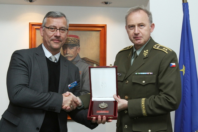 Genmjr. Jaroslav Kocián předal zástupci NDC plaketu náčelníka Generálního štábu AČR