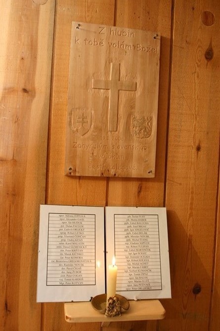 Pamětní deska v kapli na Šajkovaci– Zahynulým slovenským vojákům čeští kolegové