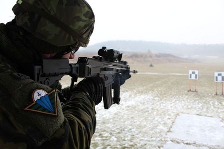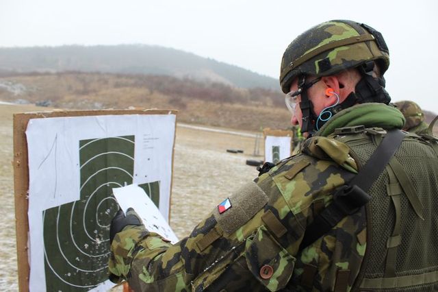 Náčelník štábu 4. brigády rychlého nasazení plukovník Tomáš Špok při střelbě na velkou vzdálenost
