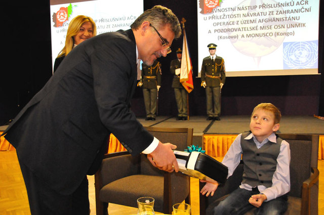 Věcné dary ředitele Společného operačního centra MO předával jeho zástupce plukovník gšt. Radek Šíba