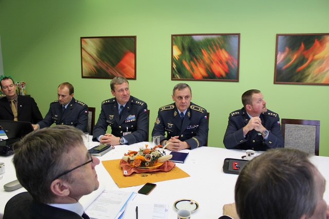 Genmjr. Jiří Verner a velvyslankyně Švédska v ČR Viktoria Li společně s dalšími účastníky jednání