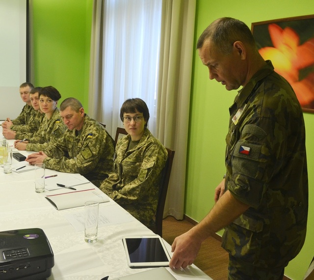 Jedním z témat kurzu byl i kurz psychologické první pomoci pod vedením hlavního psychologa MO ČR plukovníka Marka Nového (zcela vpravo)