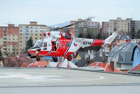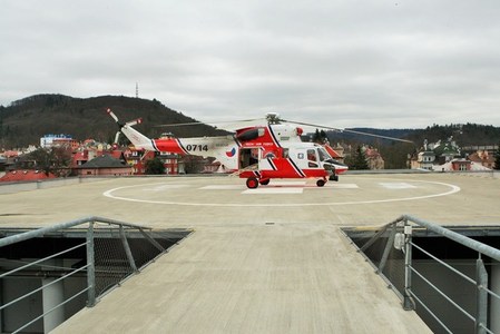 Sokol poprvé přistál na heliportu karlovarské nemocnice
