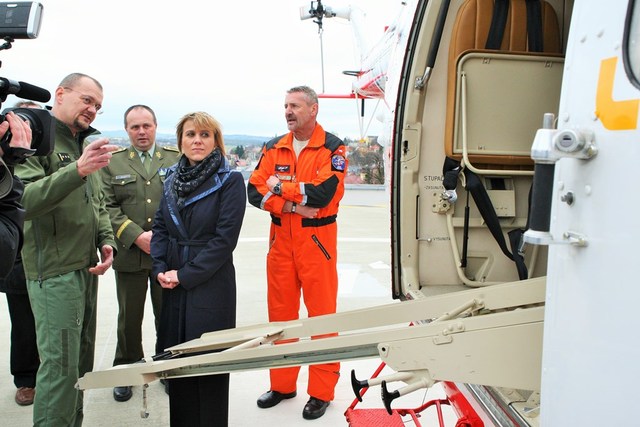 Možnosti usednout do vrtulníku hejtmanka neodolala, byť jen na zemi
