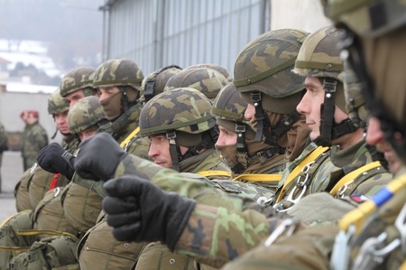 Výcvik příslušníků 43. výsadkového praporu na letišti v Chrudimi