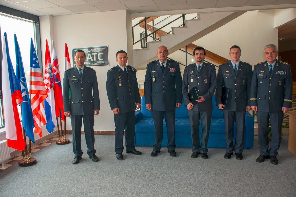 Předání certifikátů pilotům por. Ing. Pavolovi Hernovi a por. Ing. Michalu Krejčiříkovi plukovníkem chorvatského letectva Mato Mikičem