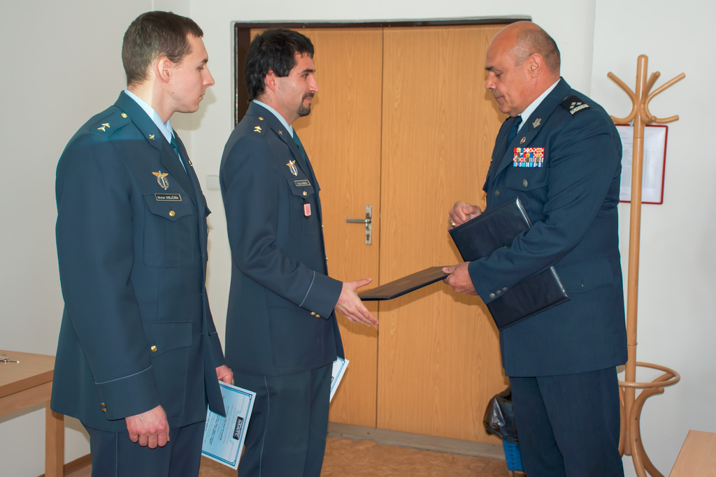 Předání certifikátů pilotům por. Ing. Pavolovi Hernovi a por. Ing. Michalu Krejčiříkovi