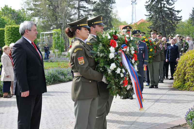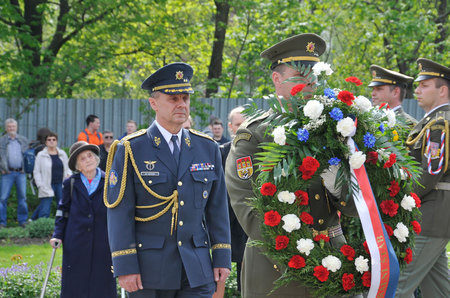 Za Generální štáb Armády České republiky věnec k soše zakladatele státu položil generálmajor Jiří Verner