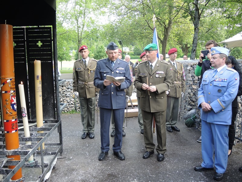 Modlitba před zapálením svíce za české vojáky, vpravo generálmajor Petr Mikulenka