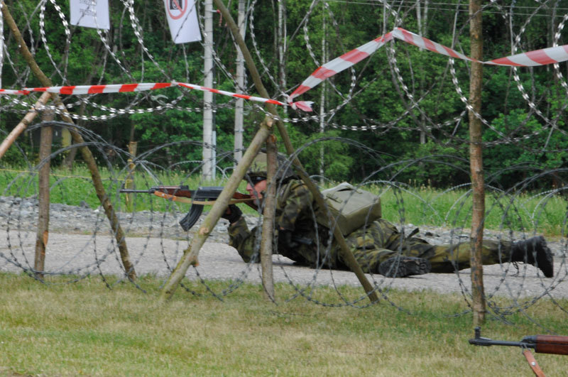 Příslušníci 121. pěší roty v roli obránců a ochránců vodní hráze na Želivce