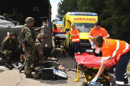 Při přestřelce byli vážně postřeleni dva vojáci, po první pomoci poskytli odbornou pomoc záchranáři Zdravotnické záchranné služby z Benešova a Kutné Hory
