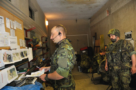 Velitelské stanoviště cvičení Hráz 2017 - u mapy a plánků pplk. Robert Speychal