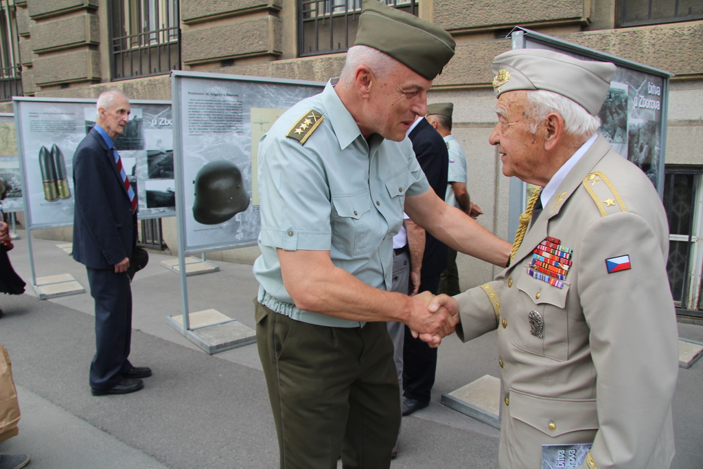 Zástupce náčelníka Generálního štábu se na výstavě zdraví s válečným veteránem brig. gen. Miloslavem Masopustem